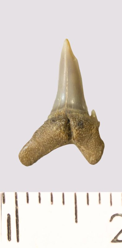 Зуб. Акула. Odontaspis venusta (Leriche, 1929). Классификация: Хордовые Chordata, Позвоночные Vertebrata, Хрящевые рыбы Chondrichthyes, Пластиножаберные Elasmobranchii
