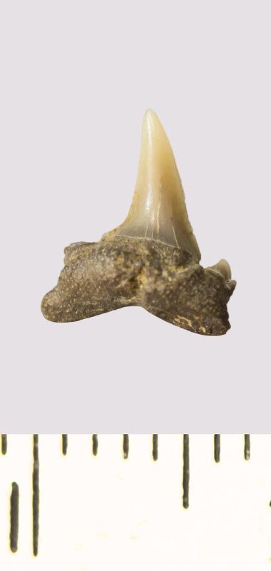 Зуб. Акула. Odontaspis venusta (Leriche, 1929). Классификация: Хордовые Chordata, Позвоночные Vertebrata, Хрящевые рыбы Chondrichthyes, Пластиножаберные Elasmobranchii