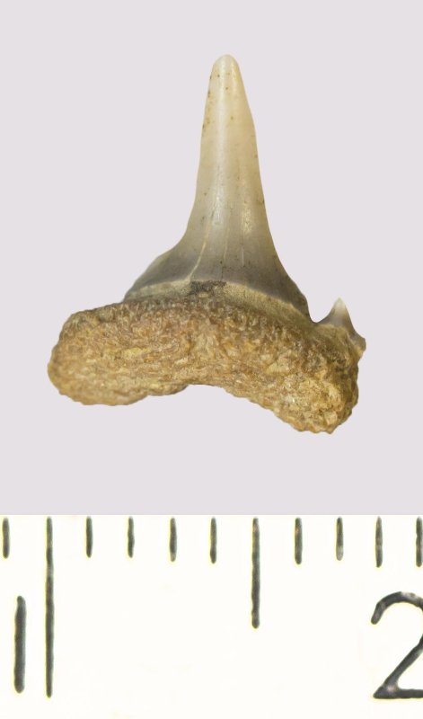 Зуб. Акула. Odontaspis venusta (Leriche, 1929). Классификация: Хордовые Chordata, Позвоночные Vertebrata, Хрящевые рыбы Chondrichthyes, Пластиножаберные Elasmobranchii