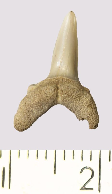 Зуб. Акула. Odontaspis venusta (Leriche, 1929). Классификация: Хордовые Chordata, Позвоночные Vertebrata, Хрящевые рыбы Chondrichthyes, Пластиножаберные Elasmobranchii