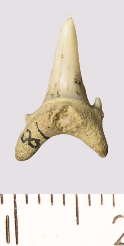 Зуб. Акула. Odontaspis venusta (Leriche, 1929). Классификация: Хордовые Chordata, Позвоночные Vertebrata, Хрящевые рыбы Chondrichthyes, Пластиножаберные Elasmobranchii