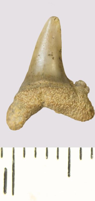 Зуб. Акула. Odontaspis venusta (Leriche, 1929). Классификация: Хордовые Chordata, Позвоночные Vertebrata, Хрящевые рыбы Chondrichthyes, Пластиножаберные Elasmobranchii