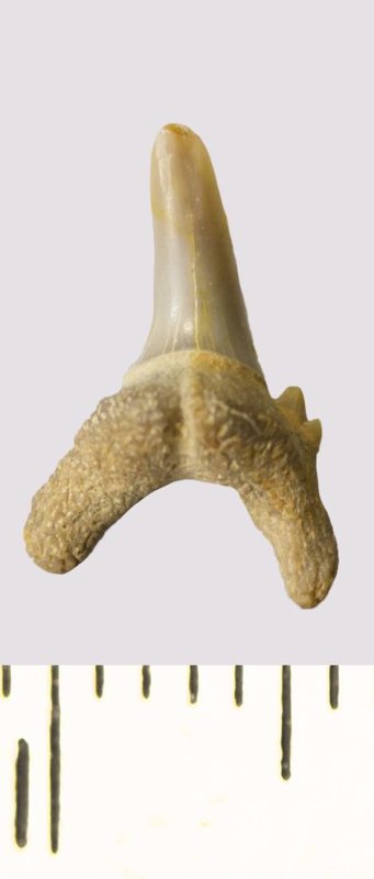 Зуб. Акула. Odontaspis venusta (Leriche, 1929). Классификация: Хордовые Chordata, Позвоночные Vertebrata, Хрящевые рыбы Chondrichthyes, Пластиножаберные Elasmobranchii