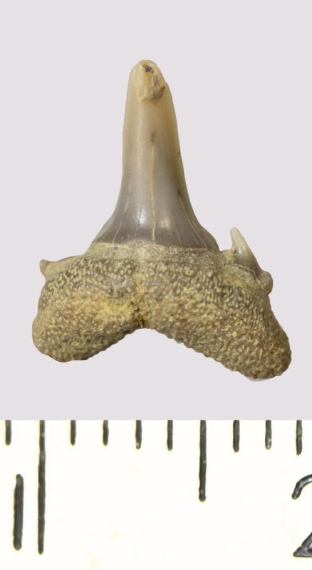 Зуб. Акула. Odontaspis venusta (Leriche, 1929). Классификация: Хордовые Chordata, Позвоночные Vertebrata, Хрящевые рыбы Chondrichthyes, Пластиножаберные Elasmobranchii