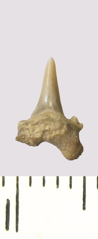Зуб. Акула. Odontaspis venusta (Leriche, 1929). Классификация: Хордовые Chordata, Позвоночные Vertebrata, Хрящевые рыбы Chondrichthyes, Пластиножаберные Elasmobranchii