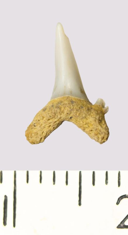 Зуб. Акула. Odontaspis venusta (Leriche, 1929). Классификация: Хордовые Chordata, Позвоночные Vertebrata, Хрящевые рыбы Chondrichthyes, Пластиножаберные Elasmobranchii
