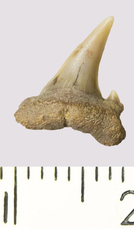 Зуб. Акула. Odontaspis venusta (Leriche, 1929). Классификация: Хордовые Chordata, Позвоночные Vertebrata, Хрящевые рыбы Chondrichthyes, Пластиножаберные Elasmobranchii