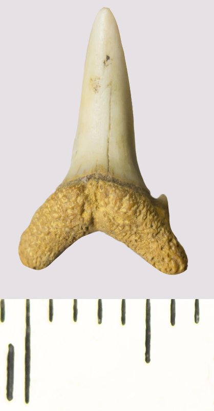 Зуб. Акула. Odontaspis venusta (Leriche, 1929). Классификация: Хордовые Chordata, Позвоночные Vertebrata, Хрящевые рыбы Chondrichthyes, Пластиножаберные Elasmobranchii