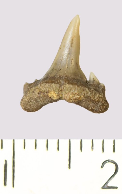 Зуб. Акула. Odontaspis venusta (Leriche, 1929). Классификация: Хордовые Chordata, Позвоночные Vertebrata, Хрящевые рыбы Chondrichthyes, Пластиножаберные Elasmobranchii
