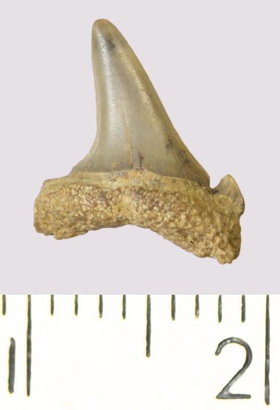 Зуб. Акула. Odontaspis venusta (Leriche, 1929). Классификация: Хордовые Chordata, Позвоночные Vertebrata, Хрящевые рыбы Chondrichthyes, Пластиножаберные Elasmobranchii