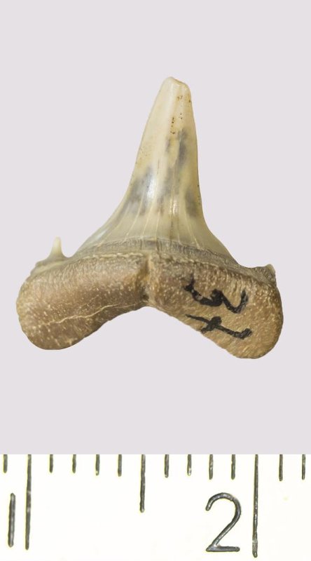 Зуб. Акула. Odontaspis venusta (Leriche, 1929). Классификация: Хордовые Chordata, Позвоночные Vertebrata, Хрящевые рыбы Chondrichthyes, Пластиножаберные Elasmobranchii