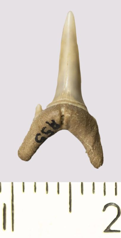 Зуб. Акула. Odontaspis venusta (Leriche, 1929). Классификация: Хордовые Chordata, Позвоночные Vertebrata, Хрящевые рыбы Chondrichthyes, Пластиножаберные Elasmobranchii