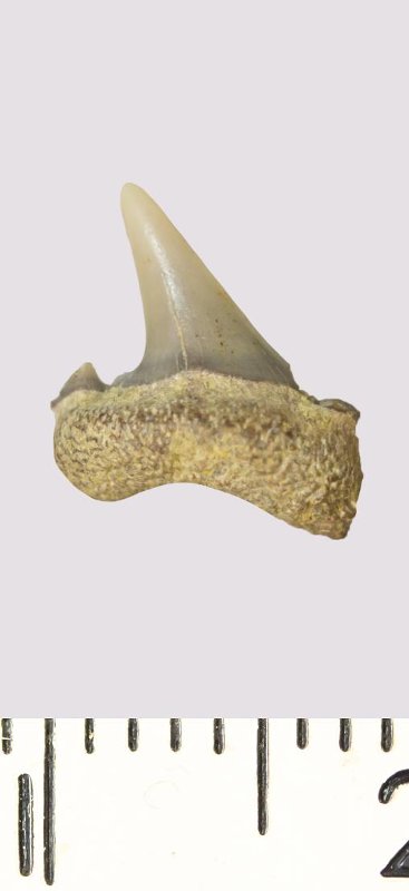 Зуб. Акула. Odontaspis venusta (Leriche, 1929). Классификация: Хордовые Chordata, Позвоночные Vertebrata, Хрящевые рыбы Chondrichthyes, Пластиножаберные Elasmobranchii