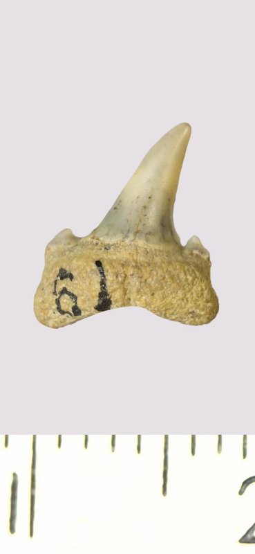Зуб. Акула. Odontaspis venusta (Leriche, 1929). Классификация: Хордовые Chordata, Позвоночные Vertebrata, Хрящевые рыбы Chondrichthyes, Пластиножаберные Elasmobranchii