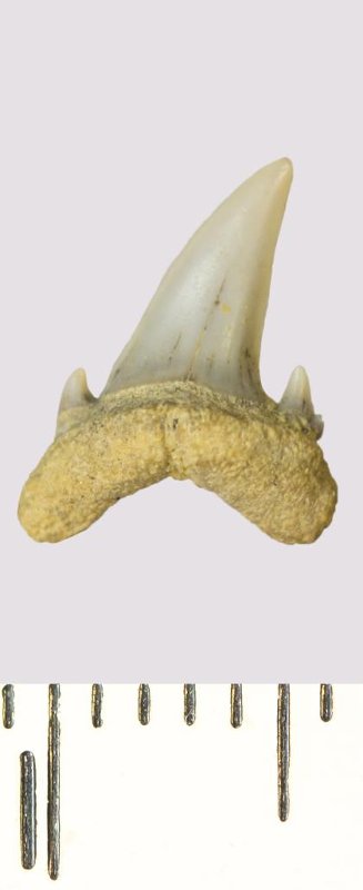 Зуб. Акула. Odontaspis venusta (Leriche, 1929). Классификация: Хордовые Chordata, Позвоночные Vertebrata, Хрящевые рыбы Chondrichthyes, Пластиножаберные Elasmobranchii