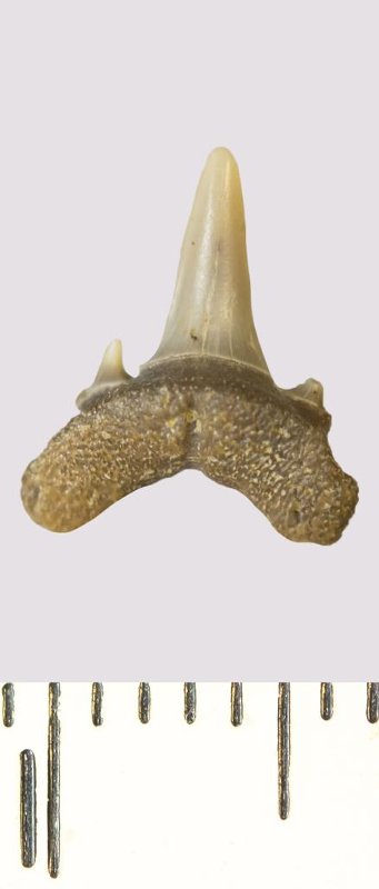 Зуб. Акула. Odontaspis venusta (Leriche, 1929). Классификация: Хордовые Chordata, Позвоночные Vertebrata, Хрящевые рыбы Chondrichthyes, Пластиножаберные Elasmobranchii