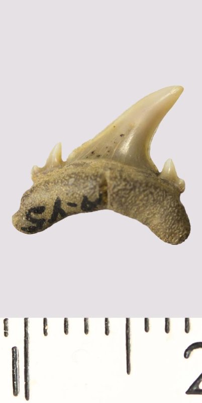 Зуб. Акула. Odontaspis venusta (Leriche, 1929). Классификация: Хордовые Chordata, Позвоночные Vertebrata, Хрящевые рыбы Chondrichthyes, Пластиножаберные Elasmobranchii