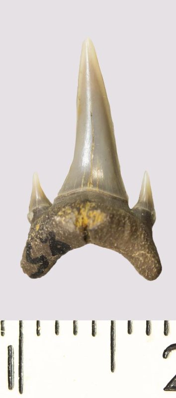 Зуб. Акула. Odontaspis venusta (Leriche, 1929). Классификация: Хордовые Chordata, Позвоночные Vertebrata, Хрящевые рыбы Chondrichthyes, Пластиножаберные Elasmobranchii