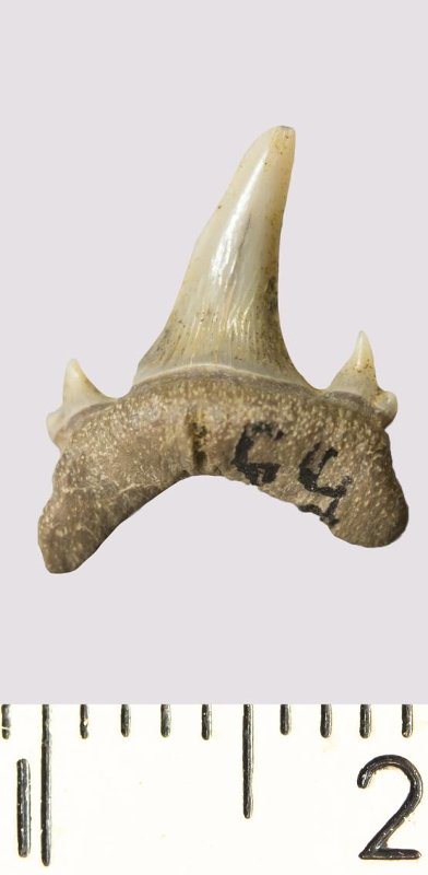 Зуб. Акула. Odontaspis venusta (Leriche, 1929). Классификация: Хордовые Chordata, Позвоночные Vertebrata, Хрящевые рыбы Chondrichthyes, Пластиножаберные Elasmobranchii