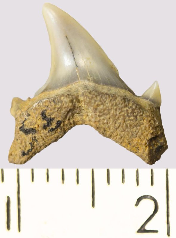 Зуб. Акула. Odontaspis venusta (Leriche, 1929). Классификация: Хордовые Chordata, Позвоночные Vertebrata, Хрящевые рыбы Chondrichthyes, Пластиножаберные Elasmobranchii