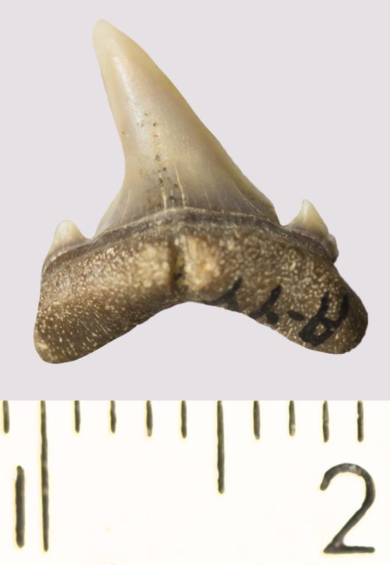 Зуб. Акула. Odontaspis venusta (Leriche, 1929). Классификация: Хордовые Chordata, Позвоночные Vertebrata, Хрящевые рыбы Chondrichthyes, Пластиножаберные Elasmobranchii
