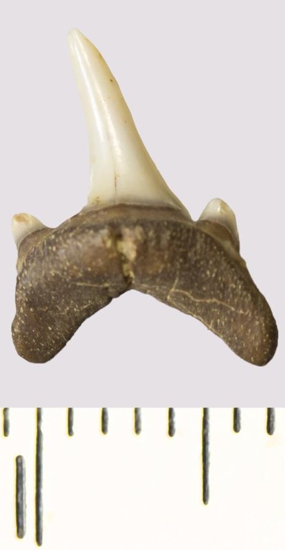 Зуб. Акула. Odontaspis venusta (Leriche, 1929). Классификация: Хордовые Chordata, Позвоночные Vertebrata, Хрящевые рыбы Chondrichthyes, Пластиножаберные Elasmobranchii