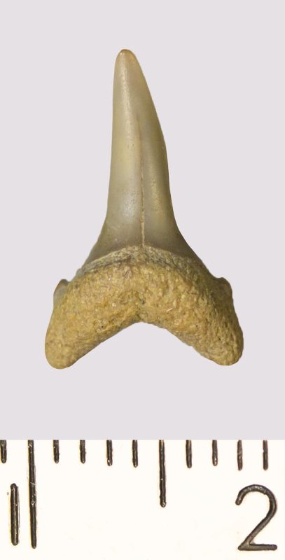 Зуб. Акула. Odontaspis venusta (Leriche, 1929). Классификация: Хордовые Chordata, Позвоночные Vertebrata, Хрящевые рыбы Chondrichthyes, Пластиножаберные Elasmobranchii