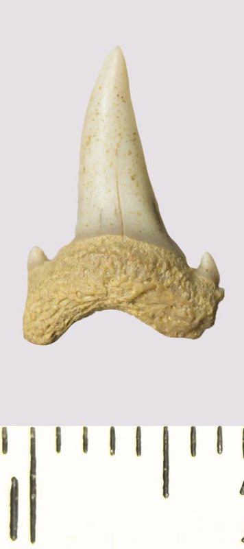 Зуб. Акула. Odontaspis venusta (Leriche, 1929). Классификация: Хордовые Chordata, Позвоночные Vertebrata, Хрящевые рыбы Chondrichthyes, Пластиножаберные Elasmobranchii