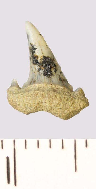 Зуб. Акула. Odontaspis venusta (Leriche, 1929). Классификация: Хордовые Chordata, Позвоночные Vertebrata, Хрящевые рыбы Chondrichthyes, Пластиножаберные Elasmobranchii