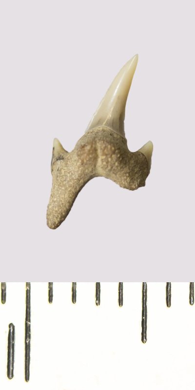 Зуб. Акула. Odontaspis venusta (Leriche, 1929). Классификация: Хордовые Chordata, Позвоночные Vertebrata, Хрящевые рыбы Chondrichthyes, Пластиножаберные Elasmobranchii