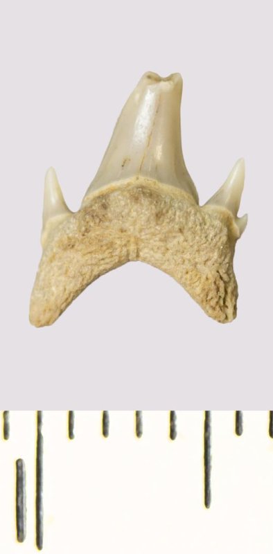 Зуб. Акула. Odontaspis venusta (Leriche, 1929). Классификация: Хордовые Chordata, Позвоночные Vertebrata, Хрящевые рыбы Chondrichthyes, Пластиножаберные Elasmobranchii
