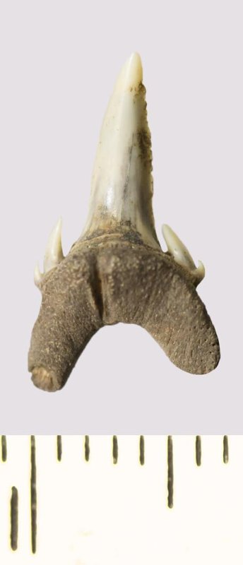 Зуб. Акула. Odontaspis venusta (Leriche, 1929). Классификация: Хордовые Chordata, Позвоночные Vertebrata, Хрящевые рыбы Chondrichthyes, Пластиножаберные Elasmobranchii