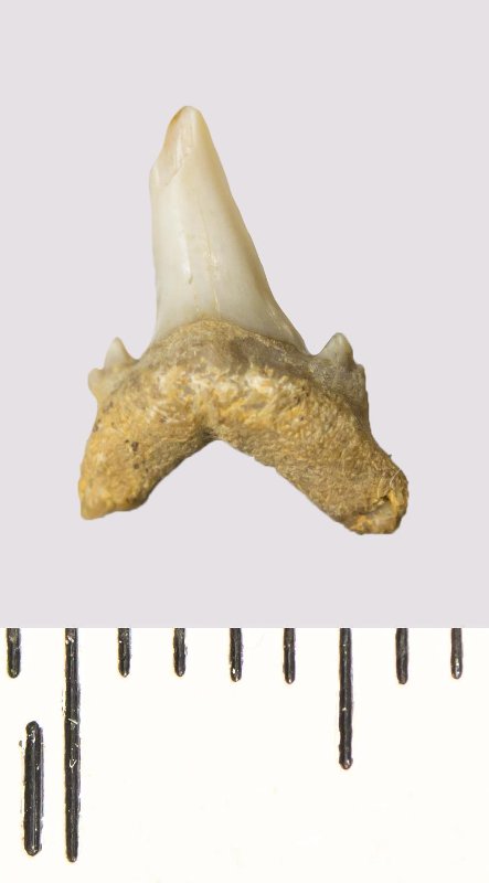 Зуб. Акула. Odontaspis venusta (Leriche, 1929). Классификация: Хордовые Chordata, Позвоночные Vertebrata, Хрящевые рыбы Chondrichthyes, Пластиножаберные Elasmobranchii