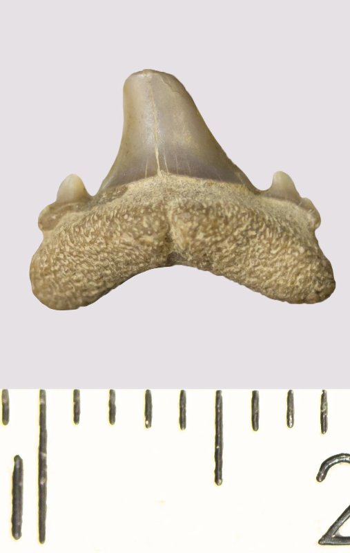 Зуб. Акула. Odontaspis venusta (Leriche, 1929). Классификация: Хордовые Chordata, Позвоночные Vertebrata, Хрящевые рыбы Chondrichthyes, Пластиножаберные Elasmobranchii