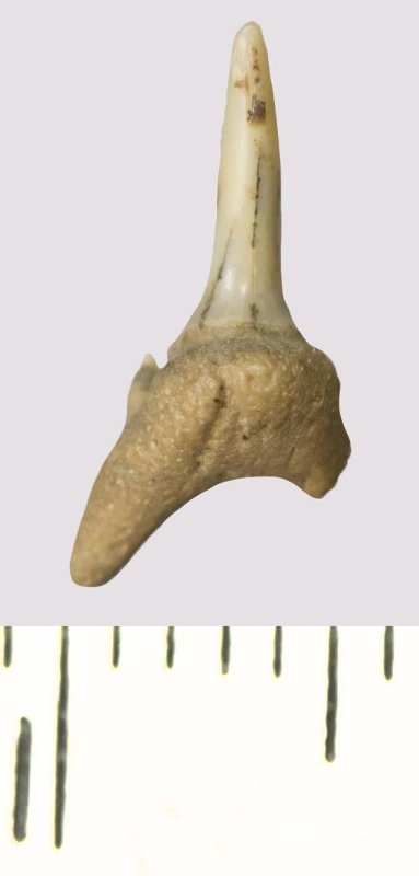 Зуб. Акула. Odontaspis venusta (Leriche, 1929). Классификация: Хордовые Chordata, Позвоночные Vertebrata, Хрящевые рыбы Chondrichthyes, Пластиножаберные Elasmobranchii