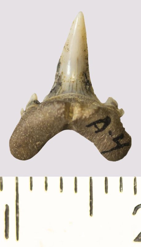 Зуб. Акула. Odontaspis venusta (Leriche, 1929). Классификация: Хордовые Chordata, Позвоночные Vertebrata, Хрящевые рыбы Chondrichthyes, Пластиножаберные Elasmobranchii
