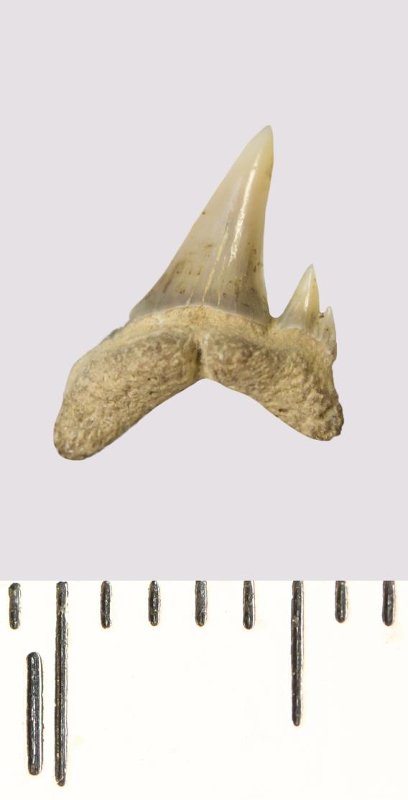 Зуб. Акула. Odontaspis venusta (Leriche, 1929). Классификация: Хордовые Chordata, Позвоночные Vertebrata, Хрящевые рыбы Chondrichthyes, Пластиножаберные Elasmobranchii