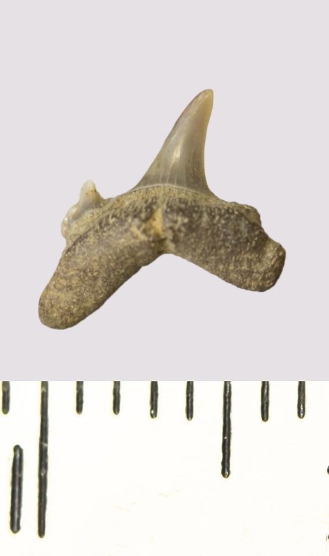 Зуб. Акула. Odontaspis venusta (Leriche, 1929). Классификация: Хордовые Chordata, Позвоночные Vertebrata, Хрящевые рыбы Chondrichthyes, Пластиножаберные Elasmobranchii