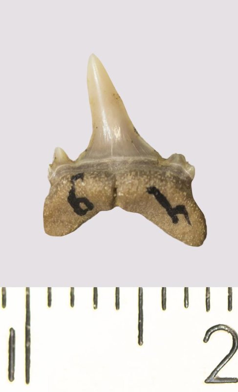 Зуб. Акула. Odontaspis venusta (Leriche, 1929). Классификация: Хордовые Chordata, Позвоночные Vertebrata, Хрящевые рыбы Chondrichthyes, Пластиножаберные Elasmobranchii