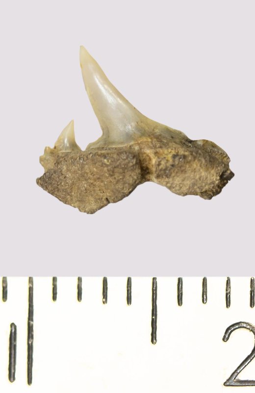 Зуб. Акула. Odontaspis venusta (Leriche, 1929). Классификация: Хордовые Chordata, Позвоночные Vertebrata, Хрящевые рыбы Chondrichthyes, Пластиножаберные Elasmobranchii