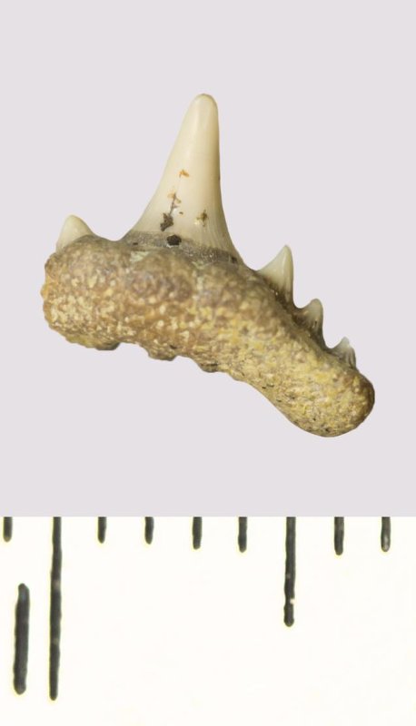 Зуб. Акула. Synechodus sp. Классификация: Хордовые Chordata, Позвоночные Vertebrata, Хрящевые рыбы Chondrichthyes, Пластиножаберные Elasmobranchii