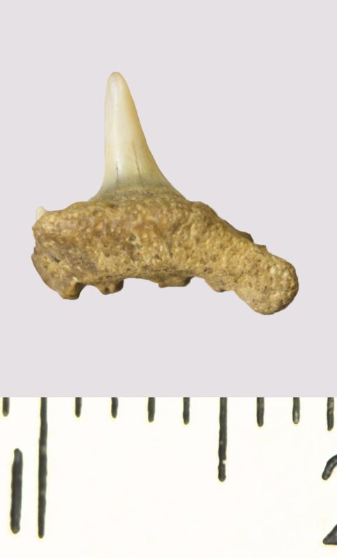 Зуб. Акула. Synechodus sp. Классификация: Хордовые Chordata, Позвоночные Vertebrata, Хрящевые рыбы Chondrichthyes, Пластиножаберные Elasmobranchii
