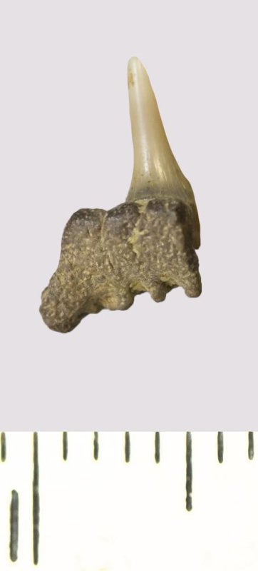 Зуб. Акула. Synechodus sp. Классификация: Хордовые Chordata, Позвоночные Vertebrata, Хрящевые рыбы Chondrichthyes, Пластиножаберные Elasmobranchii