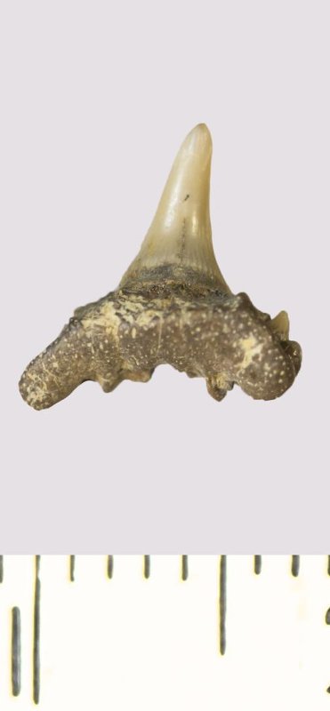 Зуб. Акула. Synechodus sp. Классификация: Хордовые Chordata, Позвоночные Vertebrata, Хрящевые рыбы Chondrichthyes, Пластиножаберные Elasmobranchii
