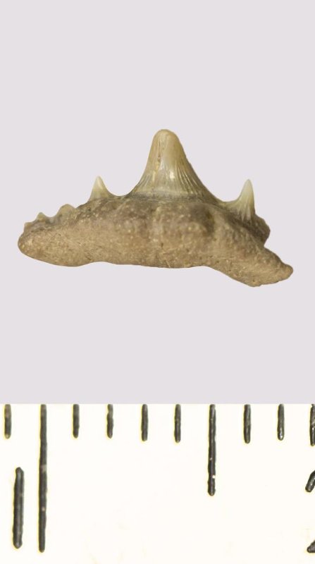 Зуб. Акула. Synechodus sp. Классификация: Хордовые Chordata, Позвоночные Vertebrata, Хрящевые рыбы Chondrichthyes, Пластиножаберные Elasmobranchii