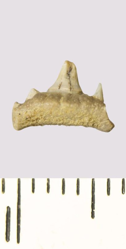 Зуб. Акула. Synechodus sp. Классификация: Хордовые Chordata, Позвоночные Vertebrata, Хрящевые рыбы Chondrichthyes, Пластиножаберные Elasmobranchii