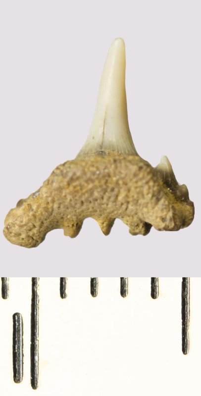 Зуб. Акула. Synechodus sp. Классификация: Хордовые Chordata, Позвоночные Vertebrata, Хрящевые рыбы Chondrichthyes, Пластиножаберные Elasmobranchii