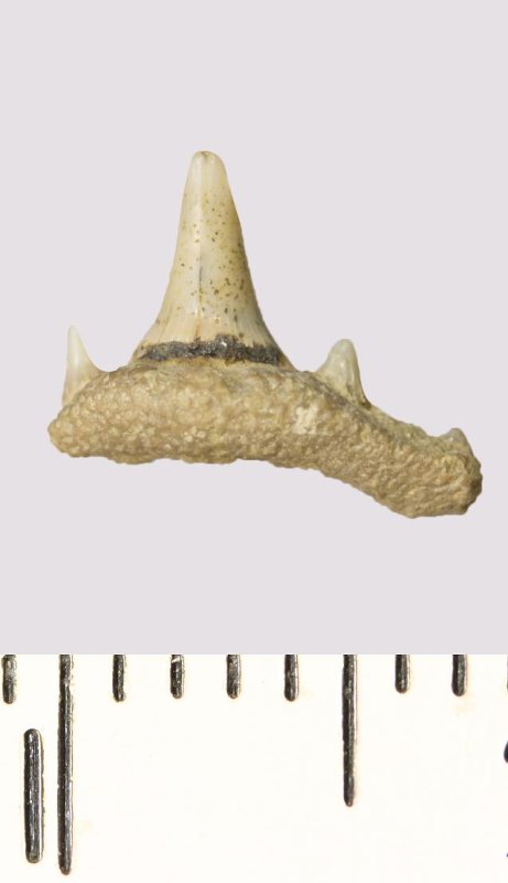 Зуб. Акула. Synechodus sp. Классификация: Хордовые Chordata, Позвоночные Vertebrata, Хрящевые рыбы Chondrichthyes, Пластиножаберные Elasmobranchii