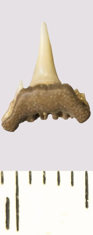 Зуб. Акула. Synechodus sp. Классификация: Хордовые Chordata, Позвоночные Vertebrata, Хрящевые рыбы Chondrichthyes, Пластиножаберные Elasmobranchii