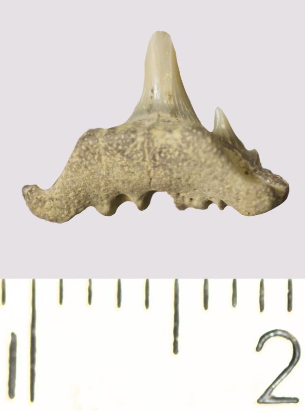 Зуб. Акула. Synechodus sp. Классификация: Хордовые Chordata, Позвоночные Vertebrata, Хрящевые рыбы Chondrichthyes, Пластиножаберные Elasmobranchii